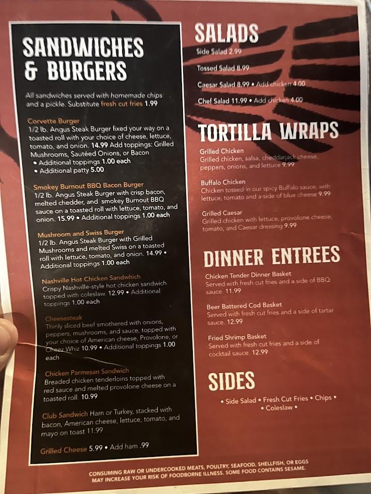 Corvette Grille features an extensive menu that caters to various cravings. Appetizers, such as fresh-cut fries and loaded cheese fries, kick off the dining experience. The sandwich and burger selection includes favorites like the Corvette Burger and the Nashville Hot Chicken Sandwich. For fans of lighter options, several salads can be ordered. Each dish is designed to please, with average prices remaining affordable. With an average price point under $12, dining out remains accessible. Dessert options cap off meals, ensuring a satisfying end. Overall, it’s a delightful culinary journey.