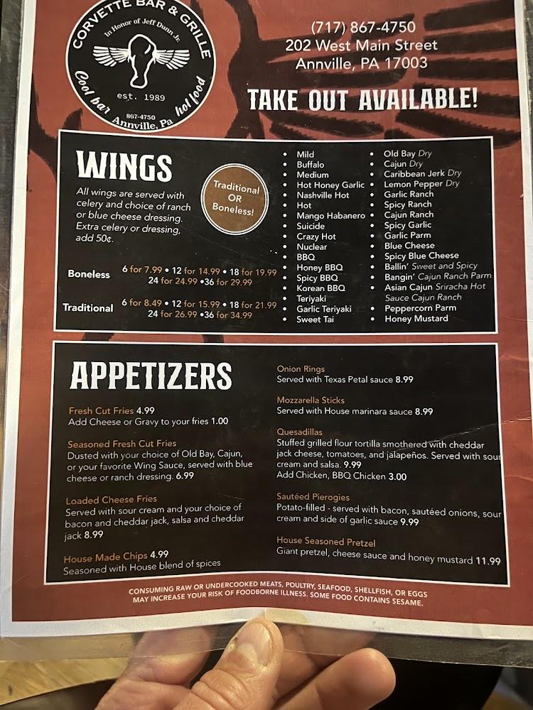 Welcome to Corvette Grille, your go-to destination in Annville for delicious grilled specialties and a vibrant atmosphere! Located at 202 W Main St, we offer a diverse menu featuring local treats, exquisite cocktails, and a wide selection of beers. Enjoy your meal on our patio, or choose from our convenient takeout and delivery options. Whether you’re in for a casual lunch, a lively dinner, or a fun evening of karaoke and quizzes, Corvette Grille has something for everyone. With accessible seating and a friendly vibe, we invite you to savor good food, great drinks, and unforgettable experiences. Come visit us today!